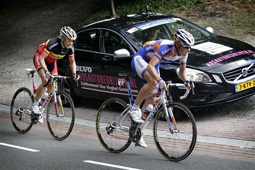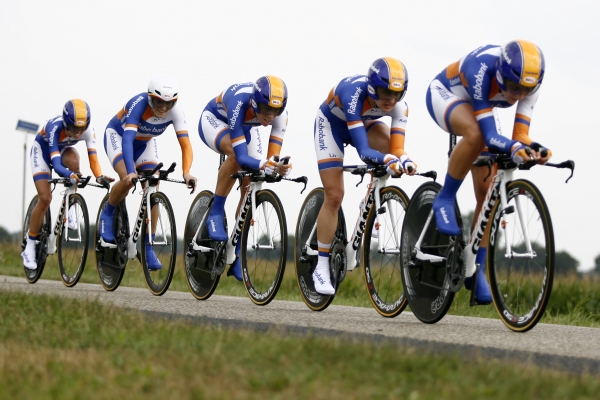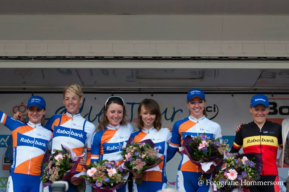 Ik kijk met een dubbel gevoel terug naar de Boels Ladies Tour van afgelopen week. Het begon al met de teleurstelling van niet-selectie voor het WK-weg. Ik was nog in de running voor de laatste twee plekken maar de bondscoach liet voor de start van de Ladies Tour weten de voorkeur te geven aan Kirsten Wild en Amy Pieters (beide Argos-Shimano), wederom ben ik dus reserve… Desalniettemin was ik volop gemotiveerd voor de belangrijkste etappekoers in Nederland. Aangezien we geen sprinter of rensters met klassementsambities mee hadden vlogen we er vanaf de eerste dag in Roden in. Deze etappe kende een aantal kasseienstroken en 2,5 kilometer ‘zandpad’. Dat beloofde spektakel maar de meeste ploegen keken de kat uit de boom en wij leken de enigste die een massasprint wilde vermijden. Dat lukte dus niet en Kirsten Wild won de etappe. De dag erop stond er in Coevorden een ploegentijdrit over 32 km op het programma. Gezien de samenstelling van onze ploeg met Sabrina en Katarzyna Niewiadoma (stagiaire bij de ploeg) die nog nooit een ploegentijdrit hadden gereden wisten we niet precies wat te verwachten. De tijdrit verliep echter verassend goed. De laatste 10 kilometer waren we Sabrina en Katarzyna kwijt maar juist in die finale konden we het tempo nog flink optrekken met z’n vieren. Hoewel het verschil zoals verwacht groot was met de winnaars Specialized-Lululemon (1:37 min) viel dat met de nummer twee, Orica-Greenedge wel mee (22 seconden). Een mooie derde plaats dus waar we tevreden mee waren! Het klassement was echter flink in een plooi gevallen. De dagen erop hoopten we dus op wat medestanders in de aanval. Dat viel echter tegen. Specialized-Lululemon bleef de koers strak controleren en op de donderdag-etappe in Leerdam wist Annemiek wel alleen in de aanval te gaan maar kreeg ze nooit echt veel ruimte om in de laatste kilometers weer ingelopen te worden waarna Wild opnieuw de sprint won. Vrijdag in Papendrecht mocht het duo Koedooder (Sengers)- Gebhart (Argos-Shimano) voor de overwinning gaan strijden. Zij kregen blijkbaar wel de zege van het peloton (Gebhart won). Zaterdag reden we van Zaltbommel naar Veen (Wijk en Aalburg) en ook hier liep het ondanks aanvalspogingen van ons uit op een massasprint, deze keer prooi voor de Australische Chloe Hosking. Zondag was het dan tijd voor de traditionele heuveletappe in Zuid-Limburg. Wij besloten nog eens alle register open te trekken. Liesbet en ik kozen meteen de aanval vanaf de Bemelerberg. Korte tijd wist ik vooruit te blijven met een groepje van vijf maar de wedstrijd explodeerde pas echt op de eerste passage van de Yserbosweg. Hier reed een klein groepje weg met onder andere Megan en Katarzyna. Net voor de tweede passage van de Yserbosweg had ik de pech om lek te rijden. Slechte timing! Ik kon net onderaan de Yserbosweg weer aansluiting in het peloton vinden maar had teveel krachten verspeeld om mee te kunnen met het tweede groepje rensters, met daarbij onder andere Annemiek, die hier wegreed. De twee groepen voorin smolten samen en in het peloton was de wedstrijd over. Balen voor mij natuurlijk maar voorin wist Annemiek er nog een spectaculaire finale van te maken. Helaas werd ze nipt door Tatiana Guderzo (Cippolini) verslagen op de meet in Berg en Terblijt maar wel een heel knappe wedstrijd gereden! De laatste dag bracht Annemiek nog naar een tweede plek in het eindklassement achter Ellen van Dijk (Specialized Lululemon) en voor Lizzie Armitstead (Boels-Dolmans). Katarzyna won de jongerentrui en met de ploeg wonnen we het ploegenklassement. Ik beëindigde deze wedstrijd als 24e in het eindklassement. Zelf had ik wat gemengde gevoelens omdat ik graag mijn goede vorm bevestigd had gezien in een mooie uitslag. Hiervoor had ik iets meer geluk nodig gehad, een iets beter op elkaar ingespeelde ploeg voor een tactisch lastige wedstrijd als de Ladies Tour altijd is en was tenslotte het weer natuurlijk veel te mooi voor een Nederlandse koers! Volgend jaar beter…